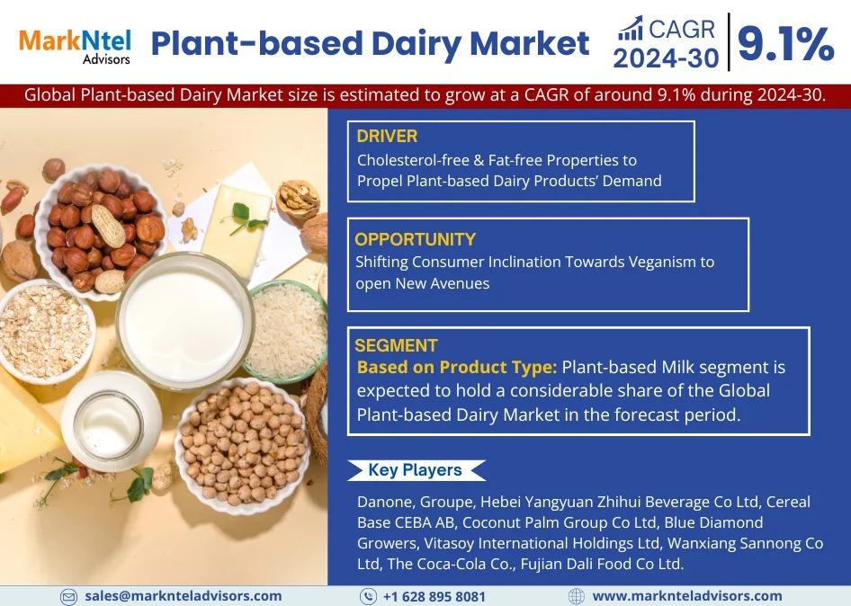 MarkNtel Advisors, a leading market research and consulting firm, has announced the release of its latest study titled Plant-based Dairy Market Research Report: Forecast (2024-30). This report provides a detailed assessment of the Plant-based Dairy Market, covering its evolving dynamics, emerging trends, key growth drivers, major challenges, and competitive landscape.